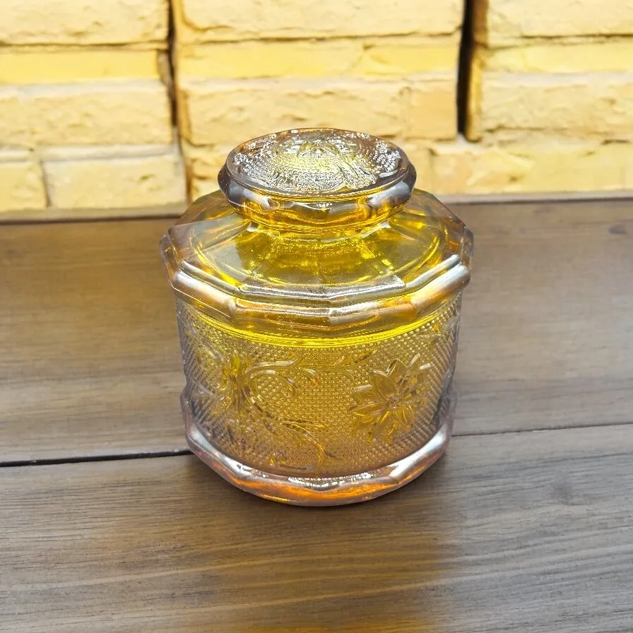 6inch TIARA GLASS AMBER HUMIDOR NEW OLD STOCK WITH BOX